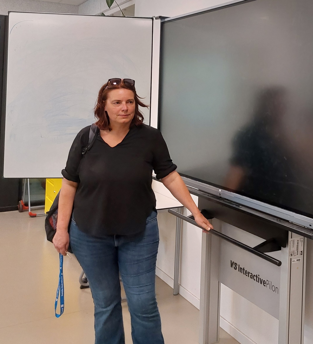 Kerstin Völker-Zahn, die Vorsitzende des Schulelternbeirats, erklärt hier die verschiedenen Funktionen des High-Tec-Smart-Boards.