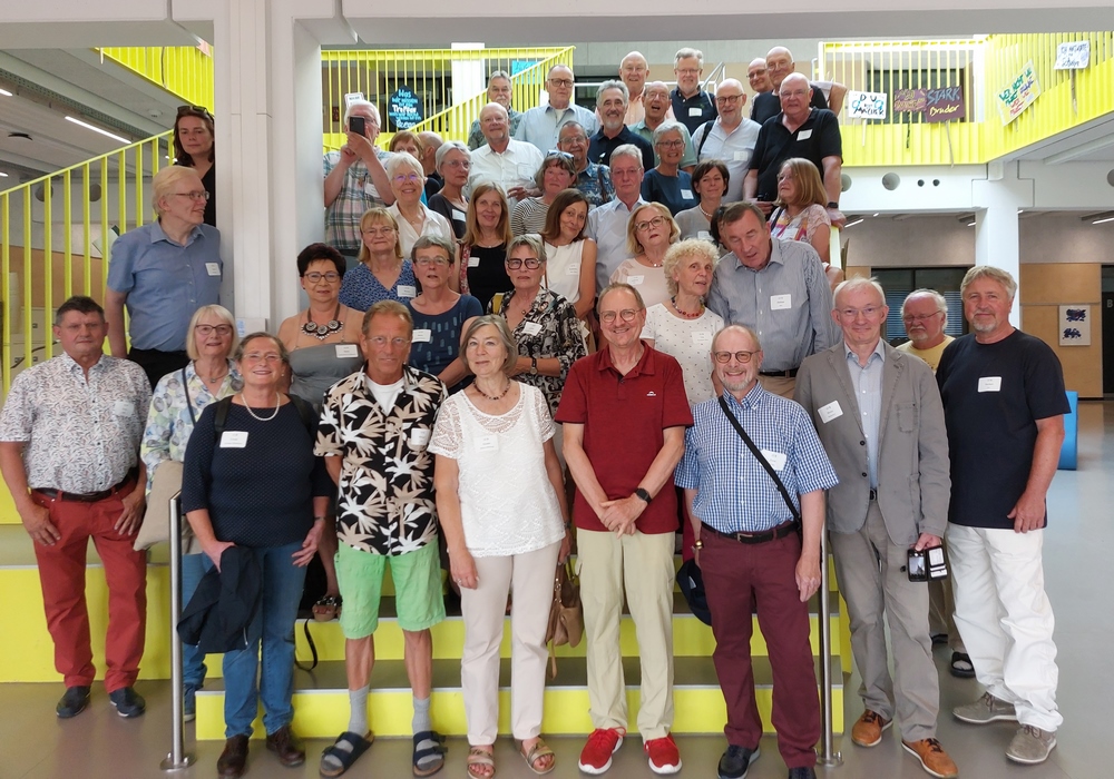 So trafen sich die Ehemaligen zu ihrem Goldenen Abitur am Samstag den 17.6.2023 am späten Nachmittag in „ihrer“ Schule zu einem Sektempfang.